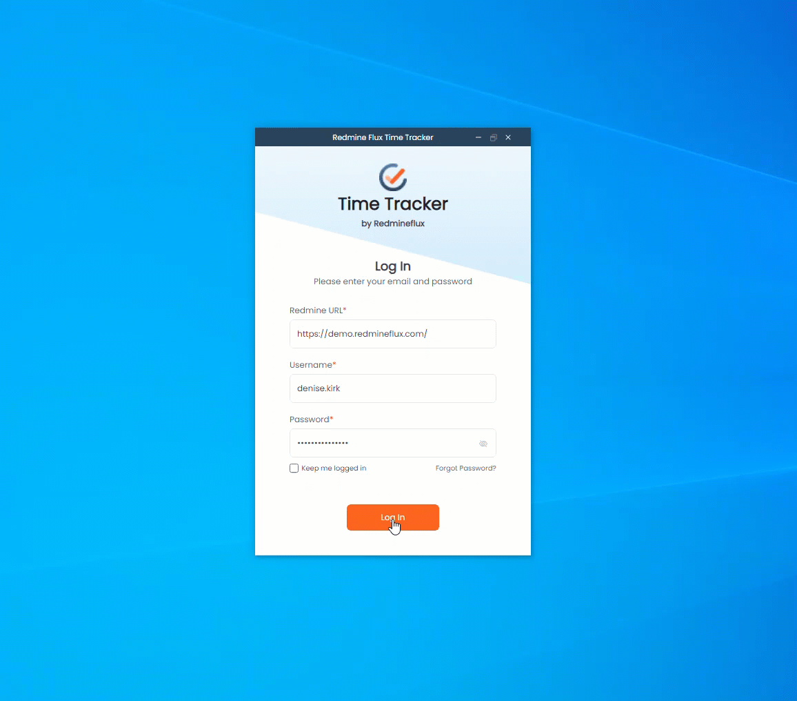 - Log in to the Time tracker app.